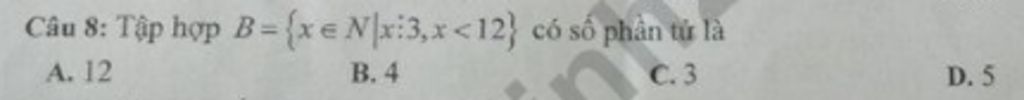 Nhưng `x<12=>x in{0;3;6;9}->` Có `4` phần tử