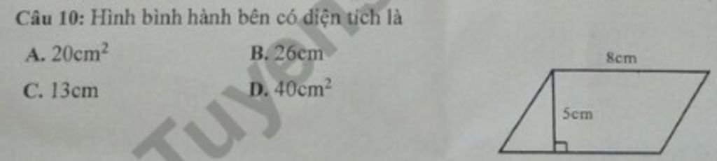 Vậy diện tích hình bình hành là `40cm^2`.