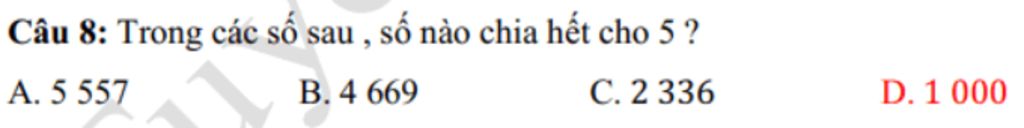 `=>` Số chia hết cho `5` là: `1 \ 000`