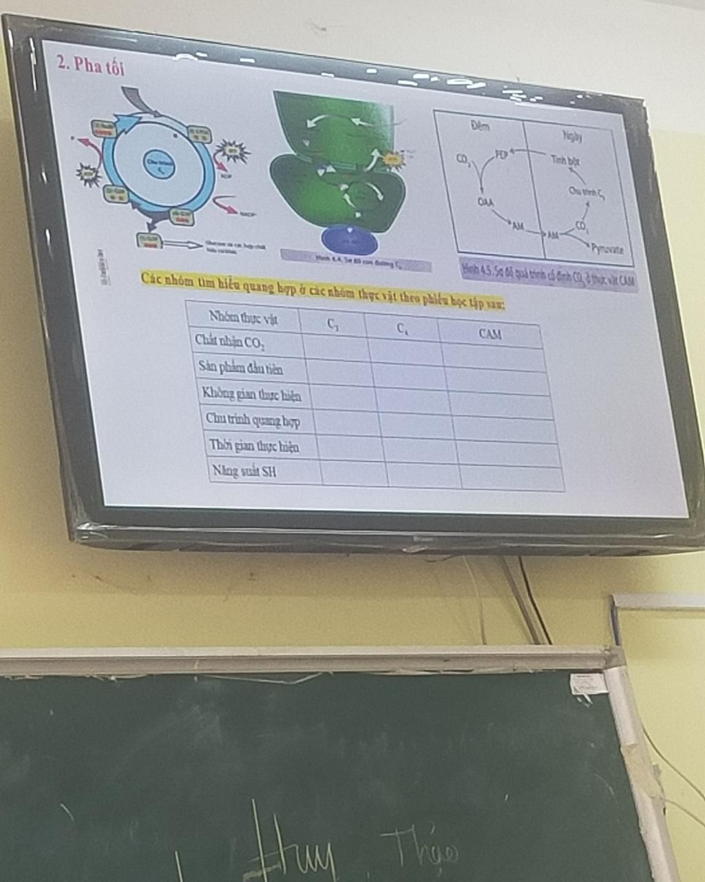 Các nhóm ùm hiểu quang hợp ở các nhóm thực vật theo phiếu học tập xam: