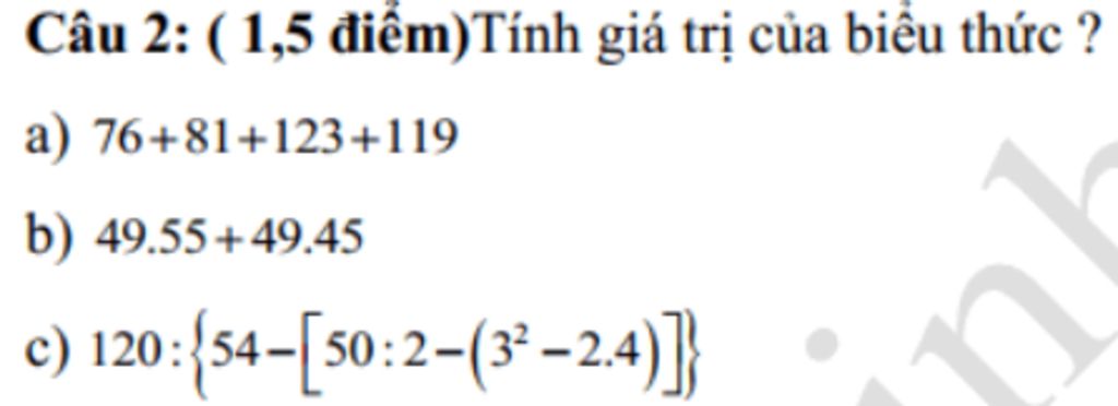 `c) 120 : { 54 - [ 50 : 2 - (3^2 - 2 . 4 ) ] }`
