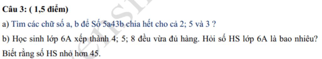 `5a43b` $\vdots$ `2` và `5` thì `b=0`