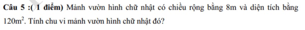 Chiều dài của mảnh vườn hình chữ nhật đó là `:`