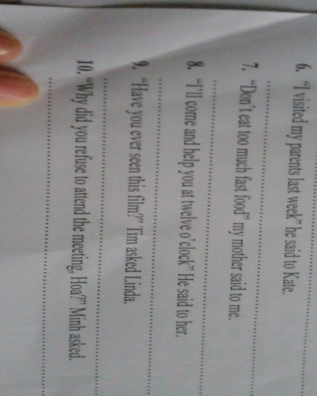 `6.` He said to Kate`/` He told Kate he had visited his parents the week before.