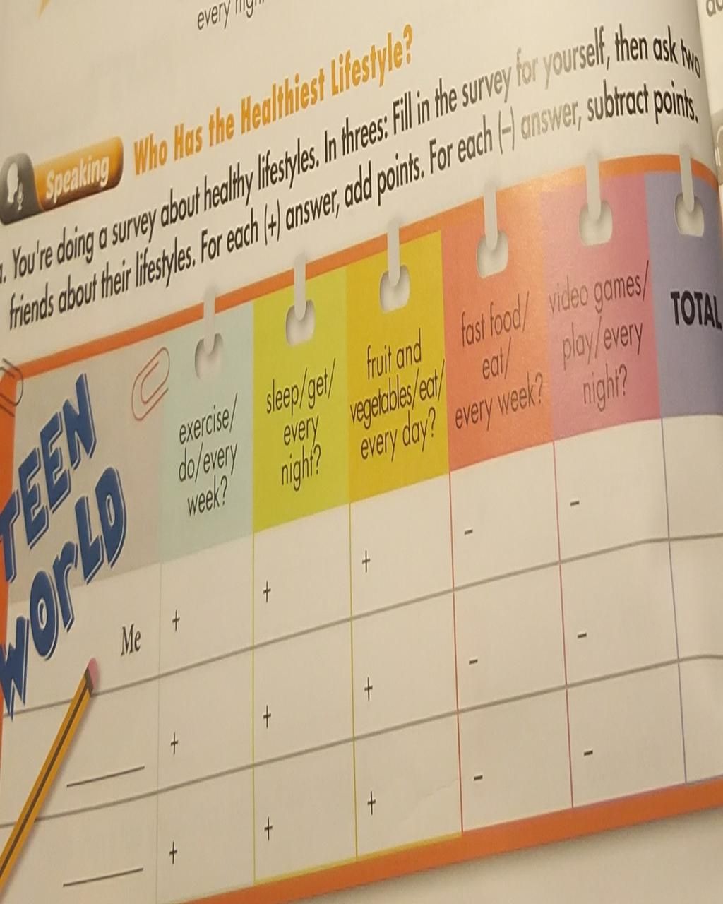 You're doing a survey about healthy lifestyles. In threes: Fill in the survey for yourself, then ask