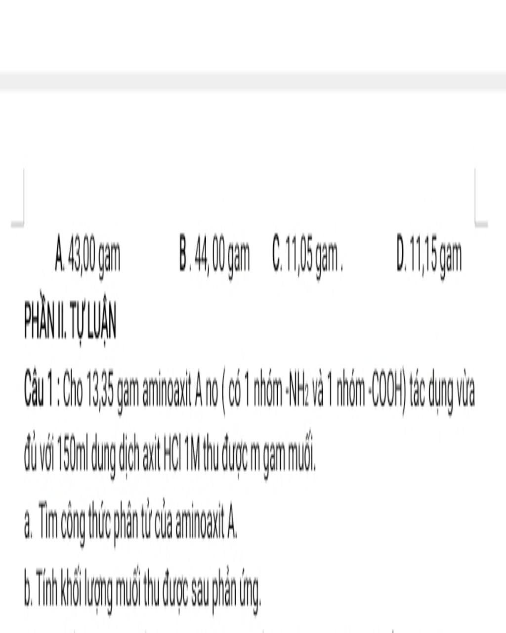 `a,` gọi `A` là `H_2N-R-COOH`