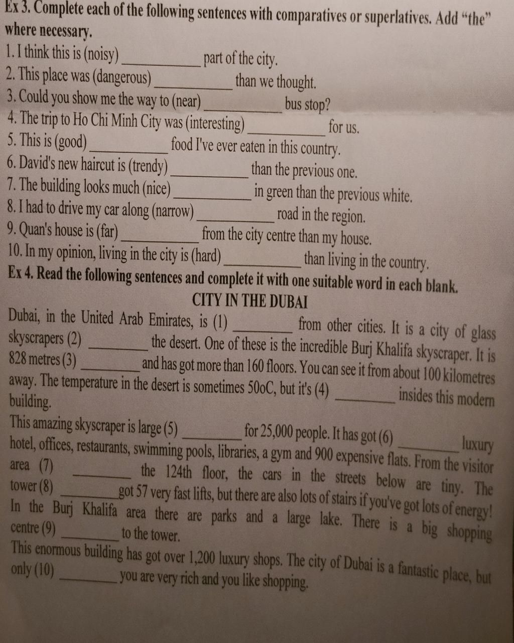 Ex 3. Complete each of the following sentences with comparatives or superlatives. Add "the"
