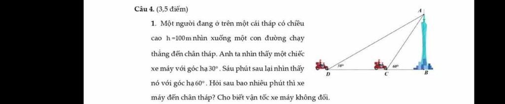 $\text{Vì}$ `AB` $\text{là chiều cao tháp nên}$ `AB` `=` `h` `=` `100` `m`