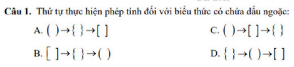 `@` Thứ tự thực hiện phép tính khi phép tính có ngoặc là `()→[]→{}`
