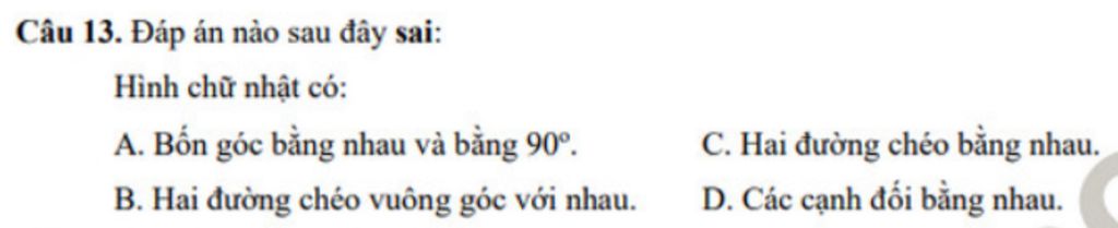 `-2` đường chéo của hình chữ nhật bằng nhau và cắt nhau tại trung điểm của chúng.