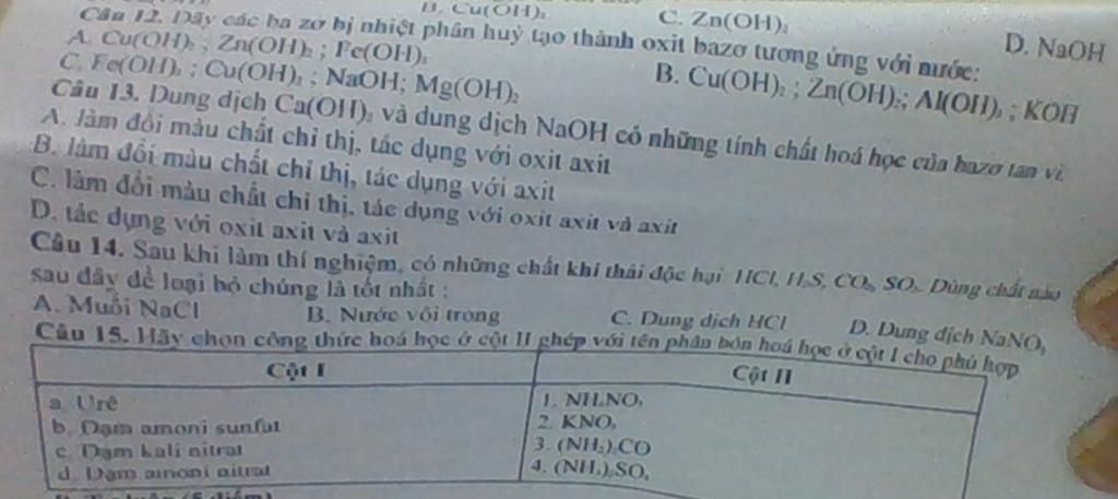 `13)` Bazo tan có TCHH riêng so với bazo là làm đổi màu chất chỉ thị và phản ứng với oxit axit.