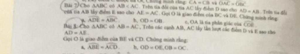 BÀ 7) Cho AABC và AB. AC. Trên tia đối của tia AC lấy điểm Duo cho AD. AB. Trên tia đối