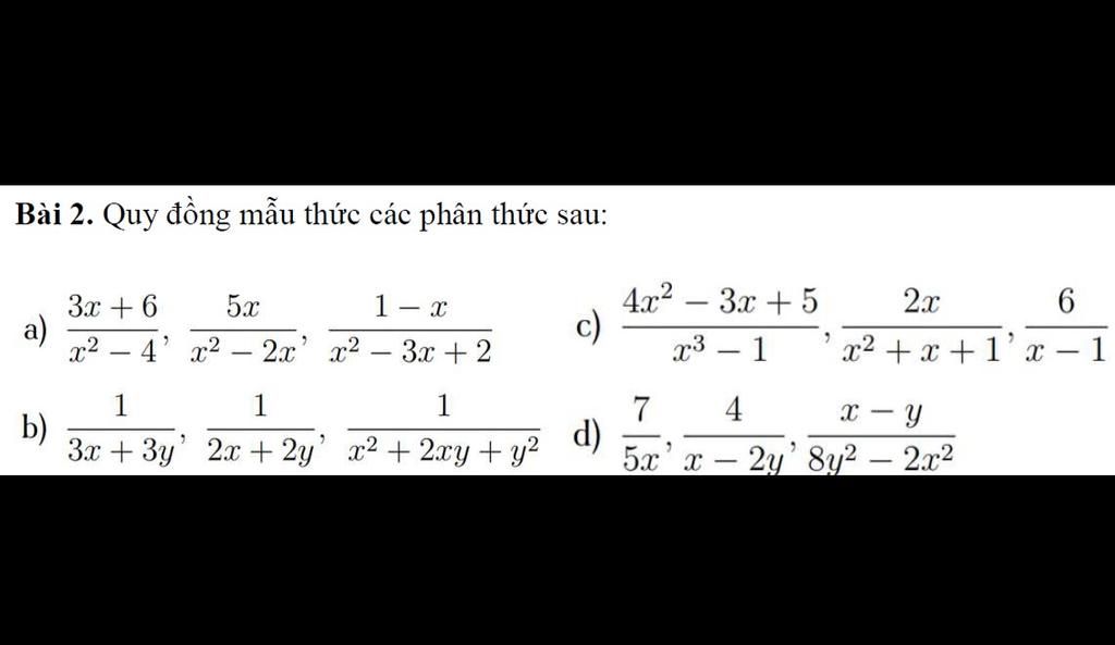 $\dfrac{4}{x-2y}$`=`$\dfrac{4.5x}{5x.(x-2y)}$`=`$\dfrac{40x(x+2y)}{10x(x+2y)(x-2y)}$