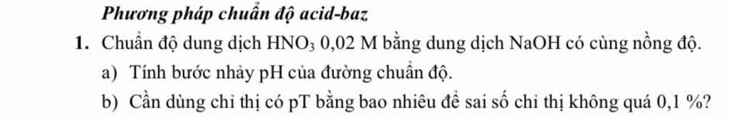 Nếu $pT<pH_{TĐ}=7$: dung dịch dư acid mạnh $HNO_3$ $0,02M$