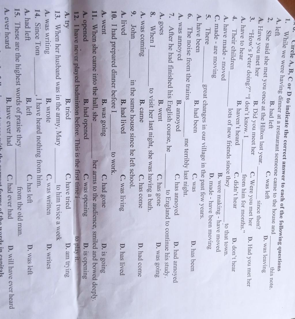 Circle A, B, C or D to indicate the correct answer to each of the following questions