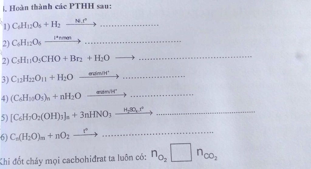 1) $C_6H_{12}O_6+H_2\xrightarrow{{Ni, t^o}} C_6H_{14}O_6$