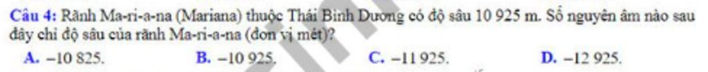 `=>` Số nguyên âm biểu thị là `: -10925 m`