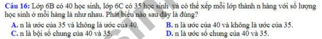 Mà lớp `6B` có `40` học sinh, lớp `6C` có `35` học sinh.