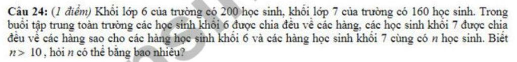 Để chia đều , `n` phải là ước chung của `200` và `160`
