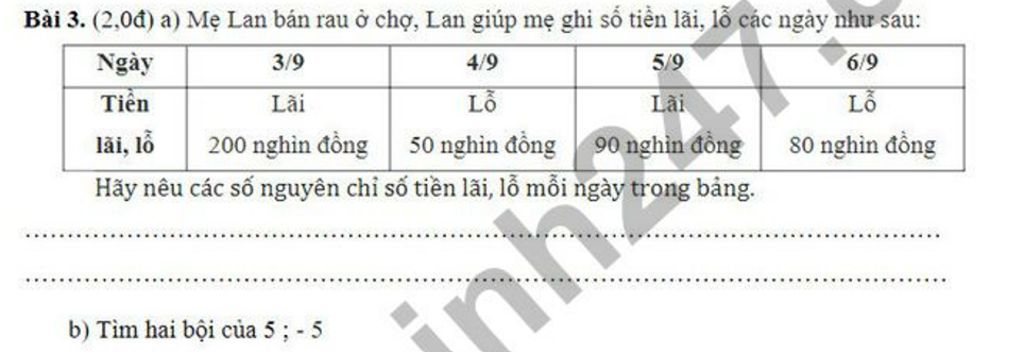 Các số nguyên chỉ số tiền lỗ là: `-50;-80`
