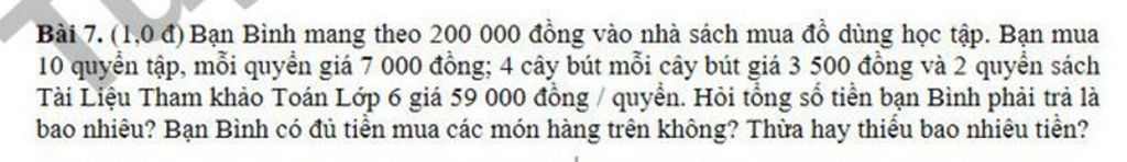 Bạn Bình không đủ tiền mua các món hàng trên vì `202000 > 200000`.