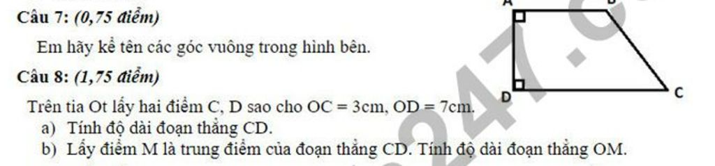 b) Lấy điểm M là trung điểm của đoạn thẳng CD. Tính độ dài đoạn thẳng OM.