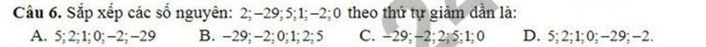 `->` Sắp xếp các số nguyên theo thứ tự giảm dần là: