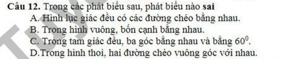 Các đáp án còn lại đều là phát biểu đúng