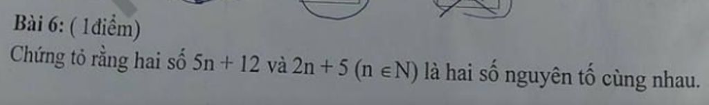 Vậy `2` số `5n + 12` và `2n + 5` là `2` số nguyên tố cùng nhau.