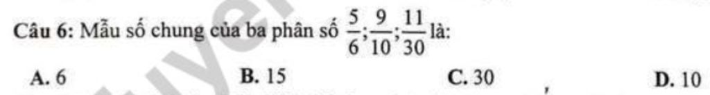 `=> 6` không thể là mẫu số chung của `3` phân số trên