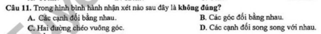 `C.` Hai đường chéo vuông góc `->` Không đúng