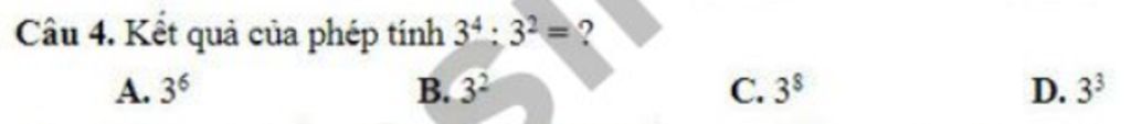 `3^4 : 3^2 = 3^{4 - 2} = 3^2`