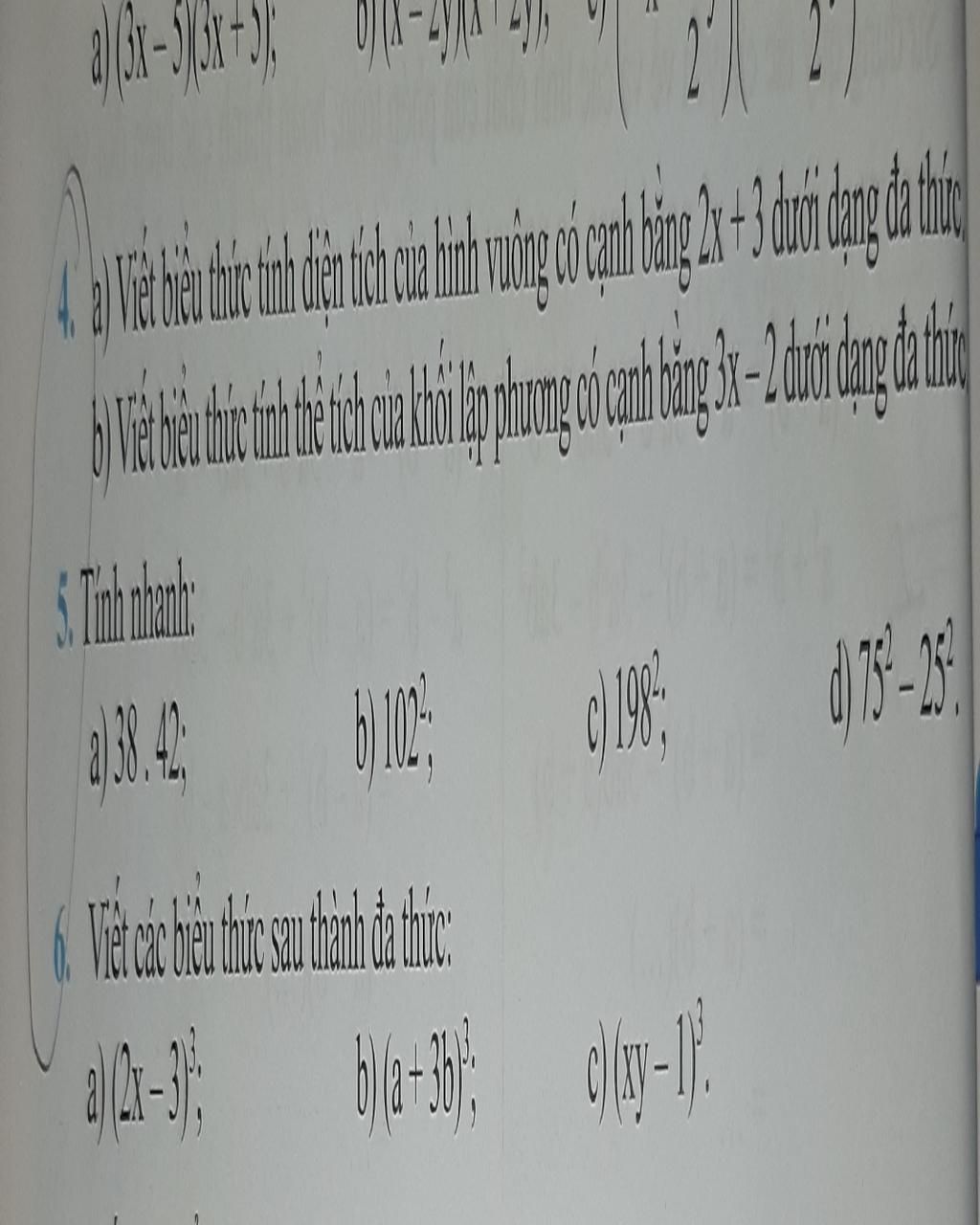 `b) V_(khối lập phương ) = (3x - 2)^3`