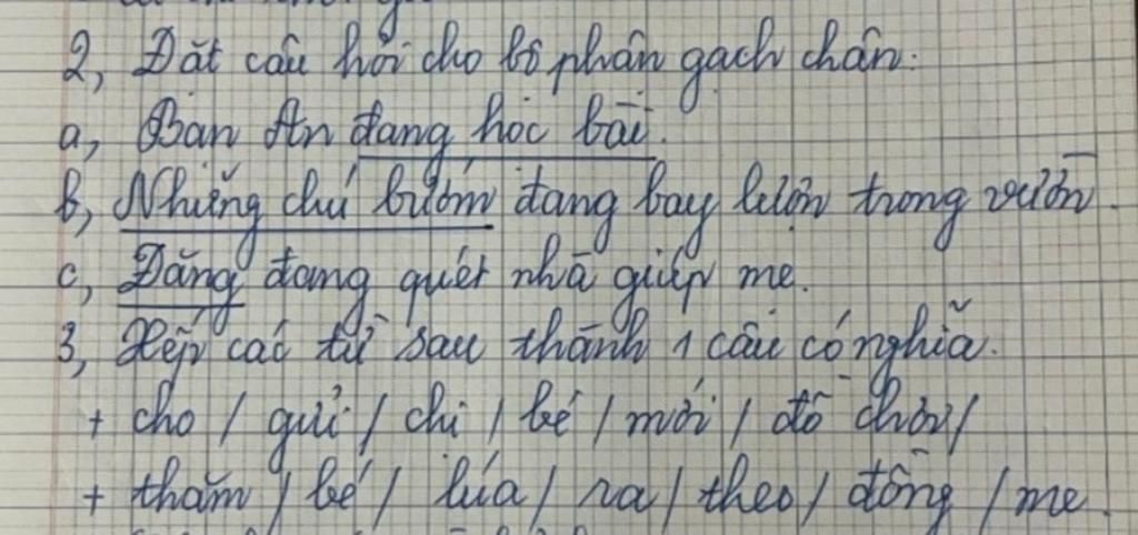 `-` Làm gì : kể về hoạt động của người, động vật,đồ vật (được nhân hoá)