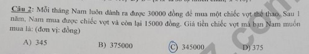 vậy giá tiền chiếc vợt bạn nam muốn mua là: `345000` đồng