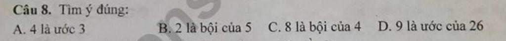 `A.` Sai vì `4>3` nên `4` không là ước của `3`