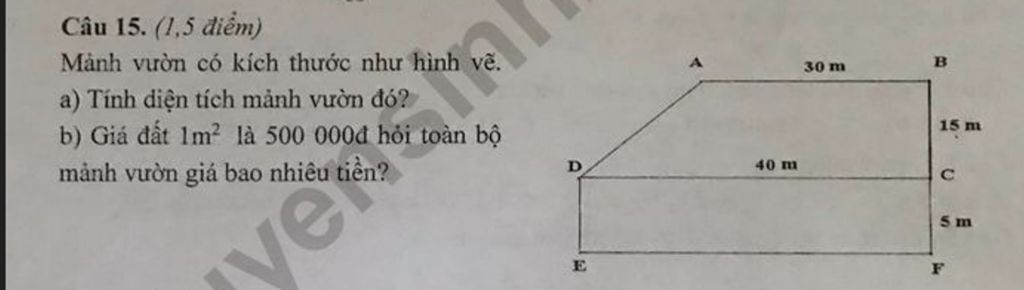 `b,)` Toàn bộ mảnh vườn giá số tiền là: