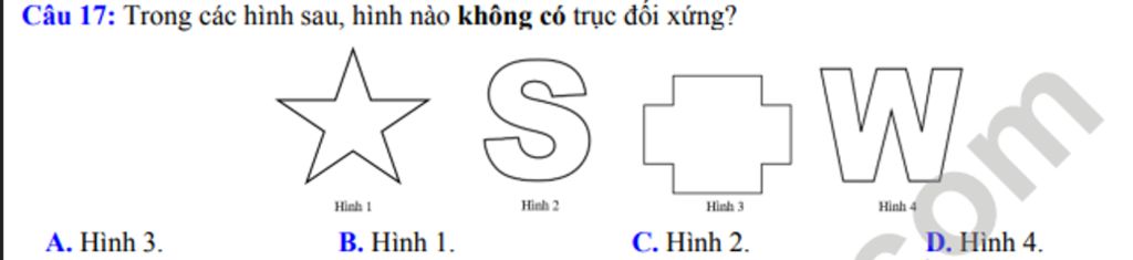 hình `2` là hình chữ `S` nên không có trục đối xứng