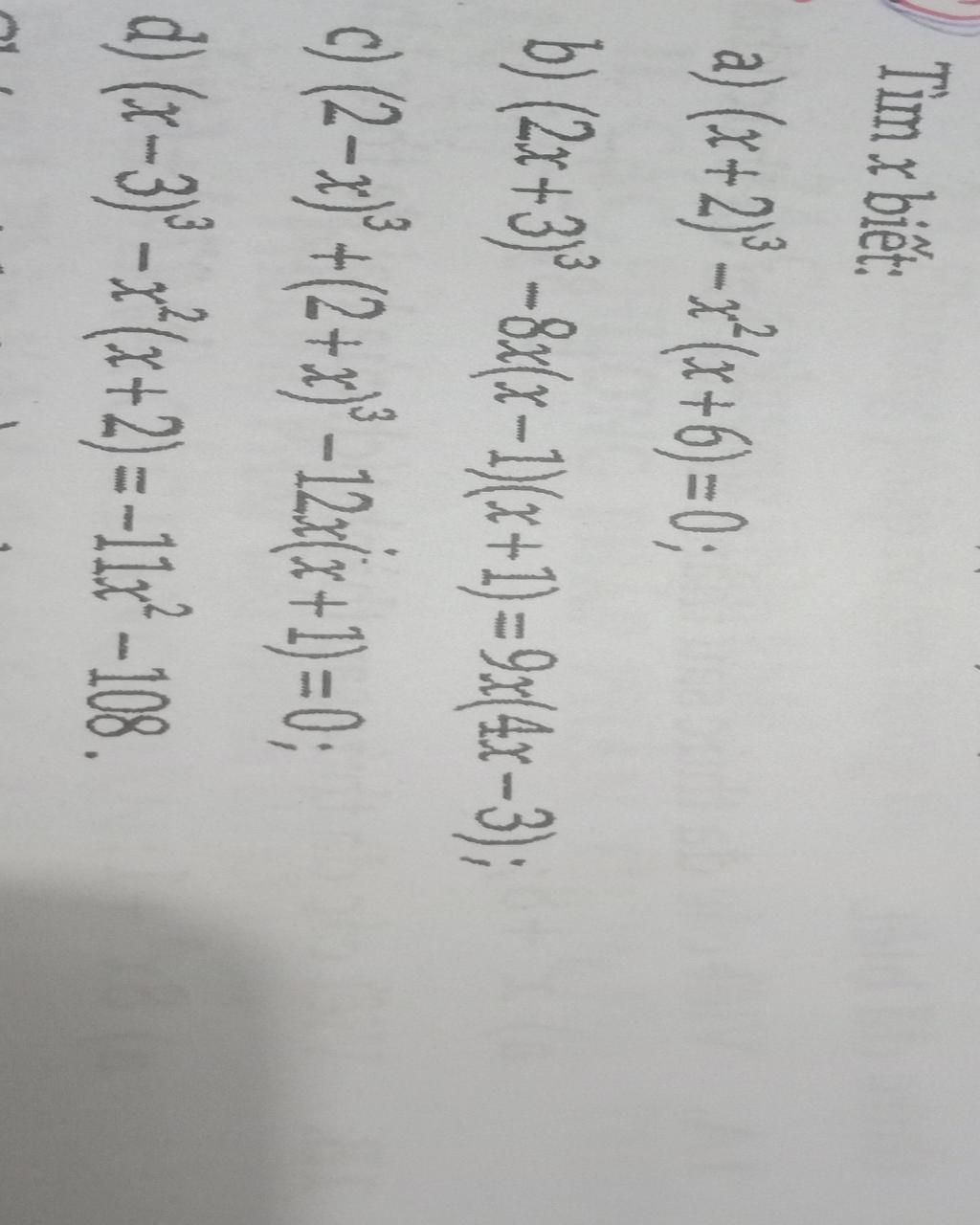 `b)` `(2x+3)^3-8x(x-1)(x+1) = 9x(4x-3)`