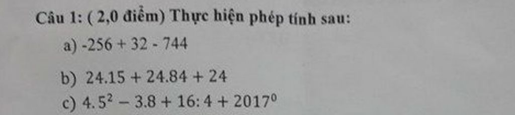 `c . ` `4*5^2-3*8+16:4+2017^0`