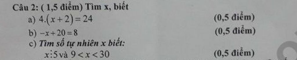 `c)` Có `x` là số tự nhiên `,x\vdots5` và `9<x<30`