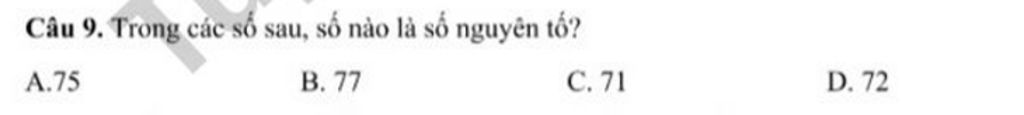 `->` Ta xét`C.` `Ư(71)={71;1}`
