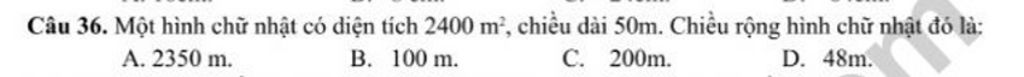 Vậy chiều rộng hình chữ nhật đó là `48m`.