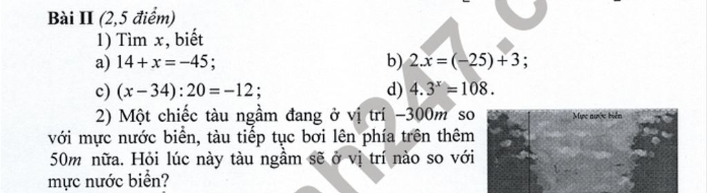 Vậy lúc này tàu ngầm cách mực nước biển `-250 m`