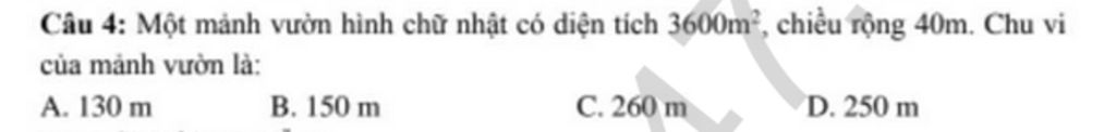 Chu vi mảnh vườn là: