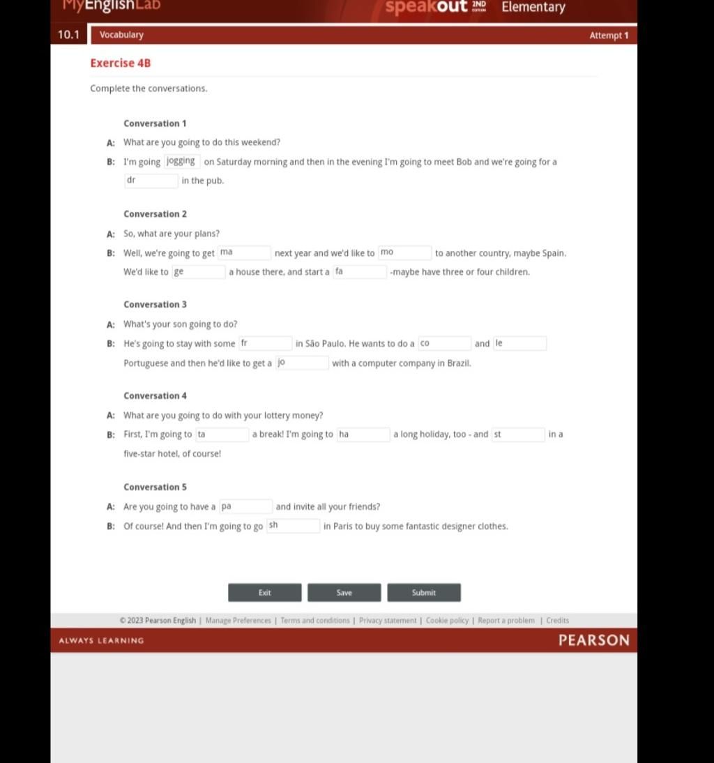 B: I'm going jogging on Saturday morning and then in the evening I'm g ...