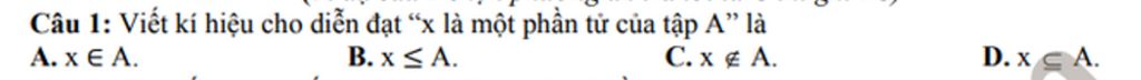`->x` thuộc `A`(`x` thuộc tập hợp `A`).