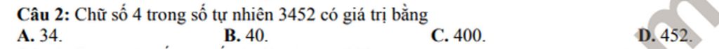 `=>` Giá trị của chữ số `4` là `400`