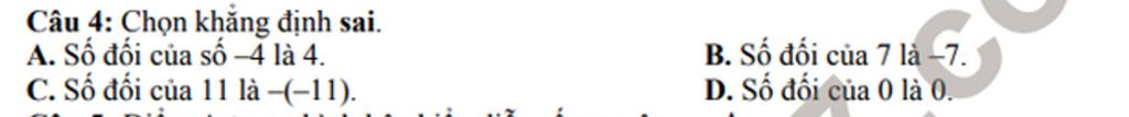 Số đối của `-4` là `4`