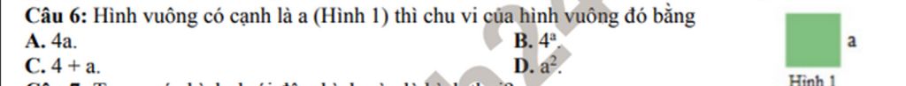 Chu vi của hình vuông đó là `: 4 * a = 4a`